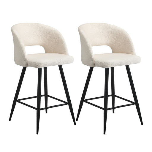 • 2X Bar Stools Kitchen Dining Chair Padded Chair Boucle White Sura