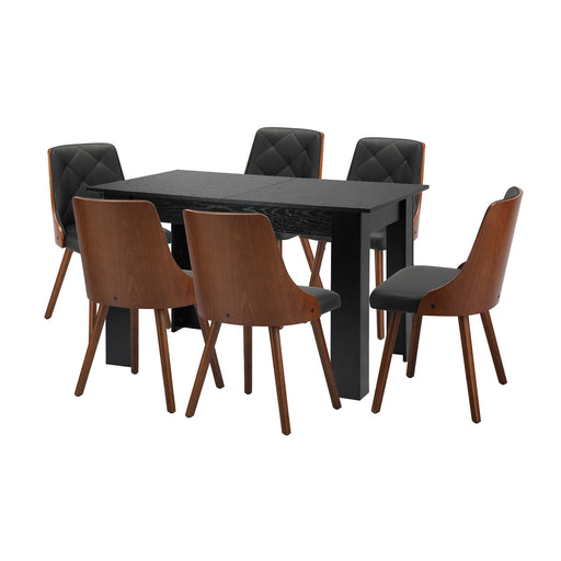 • Extendable Dining Table With 6Pcs Dining Chairs Pu Leather Black