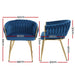 1 Set Of 4 Dining Chairs Velvet Weaving Armchair Blue