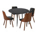 110Cm Round Dining Table With 4Pcs Dining Chairs Faux Leather Black