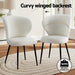 2X Dining Chairs Sherpa Boucle Wing Back White