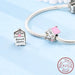 925 Sterling Silver Pink House Bead Charms Fits Bracelet Diy Gift