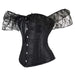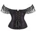 • 1 x Floral Lace Corset With Off Shoulder Sleeves Plus Size S-6Xl Bow Tie Chest Biner Bustier Top In Black