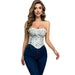 Floral Lace Trim Boned Corset Y2K Zipper Adjustable Flower Applique Full Breast Lifter Zip Up Cropped Top For Women