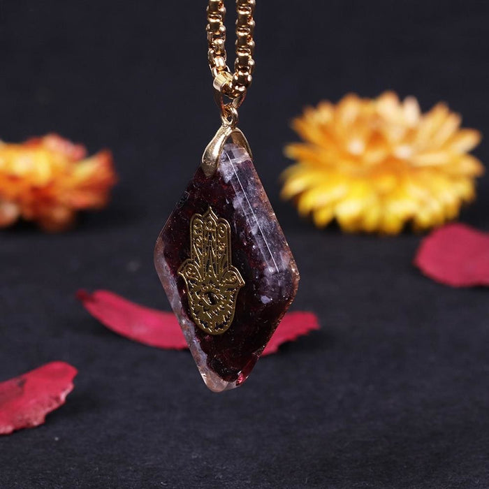 * 1 x Natural garnet Orgonite pendant Hand Of Fatifa energy necklace healing jewelry for women