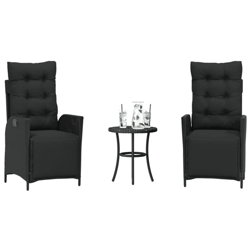 3 Piece Bistro Set with Cushions Black Poly Rattan Txoxobt