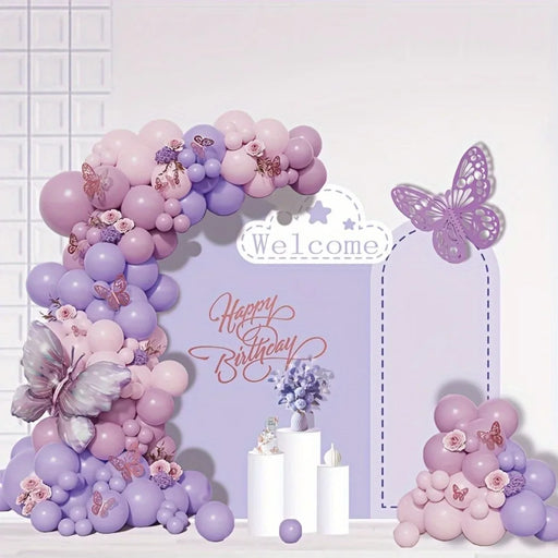 147Pcs Purple Butterfly Arch Set Pink And Rose Gold Accessories - Suitable For Birthday Wedding Indoor And Outdoor Decoration