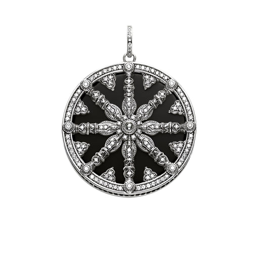 925 Sterling Silver Black Crystal Wheel Pendant Trendy Karma Jewelry Gift For Women & Men