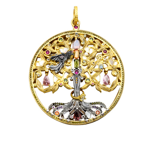 925 Sterling Silver Tree Raven Pendant Gold Plated Vintage Gift For Women & Men