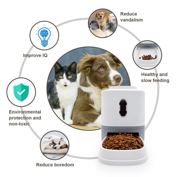 • Food Catapult ; Slow Eating Pet Dispenser – The automatic pet feeder is not only a food dispenser, by its catapult button design, the pet need time to get a small amount of food every time, then the pet food container will slow down the pet's feeding speed at the same time