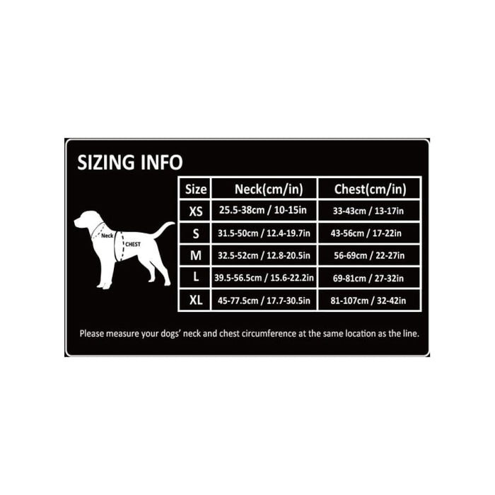 Note: the size in the chart is the size of dog. Due to different measurement methods,size may exist in 2 -3 cm error.