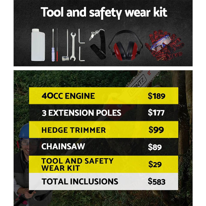 Giantz Pole Chainsaw 4 Stroke Petrol Hedge Trimmer Pruner Chain Saw Long