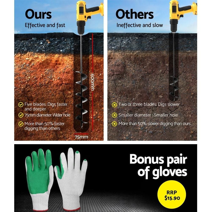 Goslash Picks Giantz Power Garden Auger Small Earth Planter 75 x 600mm Black