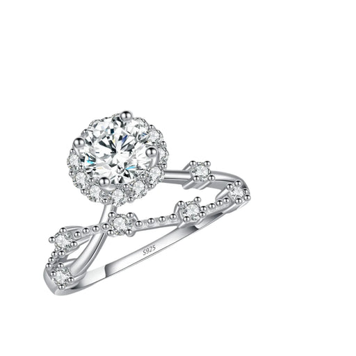 925 Sterling Silver Delicate Moissanite Halo Ring