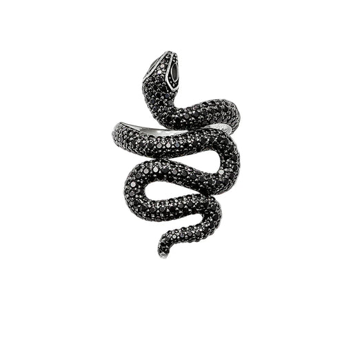 925 Sterling Silver Stunning Black Snake Pave Ring