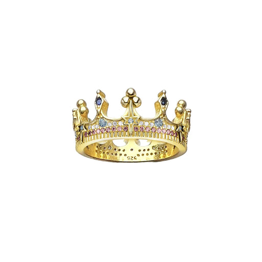 925 Sterling Silver Vintage Gold Crown Ring For Women