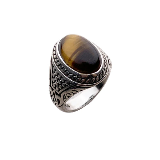 925 Sterling Silver Vintage Oval Ring Fine Jewelry For Women & Men Brown Europe Style Powerful