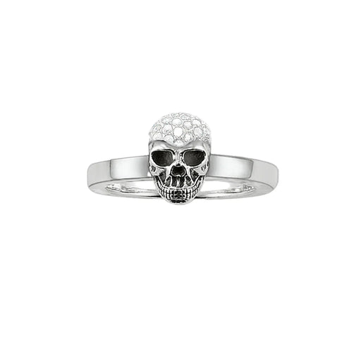 925 Sterling Silver White Pave Skull Ring Glam European Style Jewelry For Women