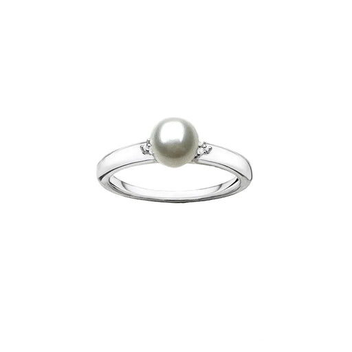 925 Sterling Silver Zircon & Pearl Ring European Style Fine Jewelry For Women