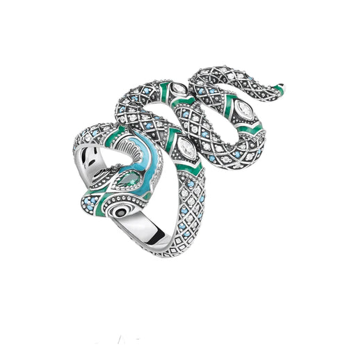 925 Sterling Silver Boho Blue Snake Ring Women Fashion Jewelry