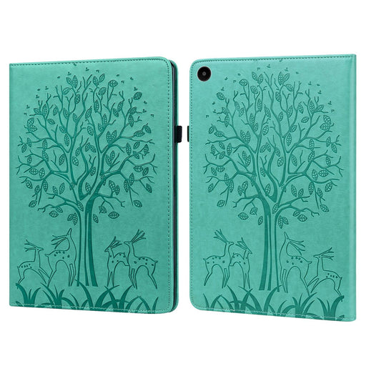 • Embossed Leather Tablet Case With Tree & Deer Pattern