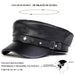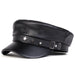 Unisex Pu Leather Military Hat With Star Buckle Flat Top Cadet Cap For Women Outdoor Sports Sunscreen Hat