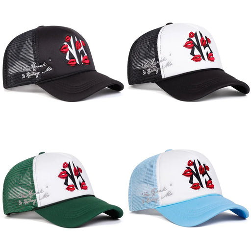Embroidered Lips Baseball Cap Adjustable Sun Hat For Spring / Summer