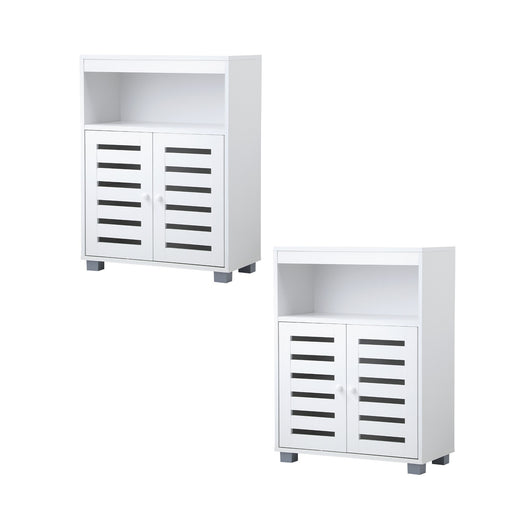 Shoe Rack Shoes Storage Cabinet Organiser Shelf 2 Doors White Set Of 2