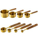 8 Piece Gold Stainless Steel Measuring Set With Wooden Handles