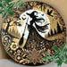 8X8 Inch Gothic Witch Metal Sign Circular Flower Wreath Decor