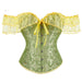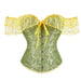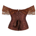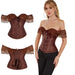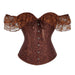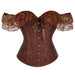 Brown Steampunk Corset With Front Busk Closure Floral Lace And Puff Sleeves