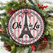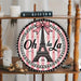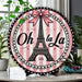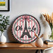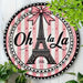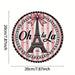 Eiffel Tower Metal Sign 8X8 Inch Round Pink & Black Stripes Festive Bow
