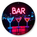 Retro Neon Cocktail Bar Sign City Skyline Metal Art For Home Pub & Cafe