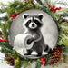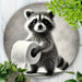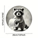 Round Raccoon Metal Wall Art 2D Printed Animal Decor For Home Office Garden & Patio