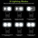 • Dimming Mode: Strong Light (Wide Flood Light) / Low Light (Wide Flood Light) / Strong Light (Condensed Light) / Strong Light (Full Light) / Breathing Flash / Burst Flash