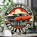 Vintage Race Car Metal Sign 8X8 Inch Inch Round Wall Art