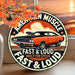 • 1 x Vintage Race Car Metal Sign 8X8 Inch Inch Round Wall Art