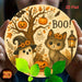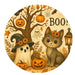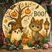Vintage Round Iron Sign Cozy Halloween & Christmas Scene With Ghosts And Puppy