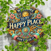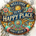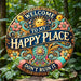 Welcome To My Happy Place Round Metal Sign 8X8 Inch Wall Decor For Bedroom Kitchen Bar & Office 2D Gift