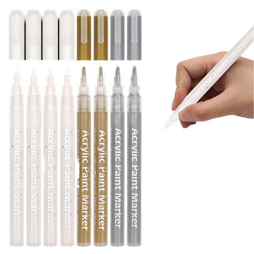 8 Pack White Paint Pens For Wood Plastic Metal Canvas