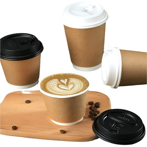 10 / 20 Piece Insulated Kraft Paper Cups With Lids For Hot / Cold Drinks