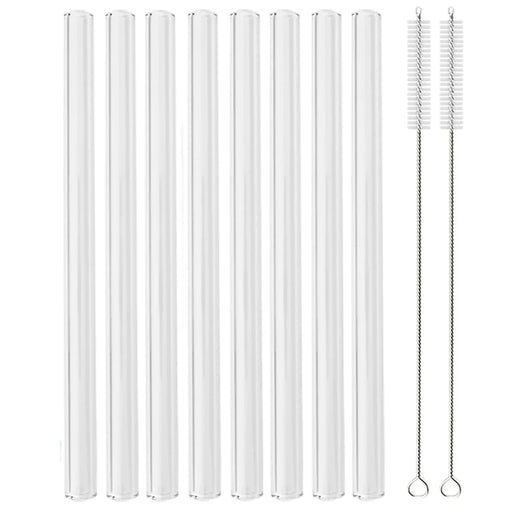 8 Piece Reusable Glass Straws For Smoothies & Cocktails With Brushes