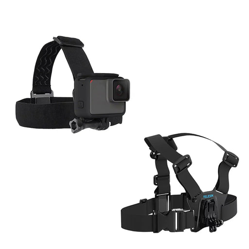 Action Camera Chest & Head Mount Kit Compatible With Gopro Insta360 Dji Osmo & More