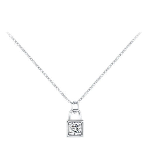 925 Sterling Silver 0.5Ct D Colour Moissanite Lock Pendant Necklace Fine Jewelry