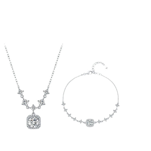 925 Sterling Silver Luxury Geometric Moissanite Necklace & Bracelet Set