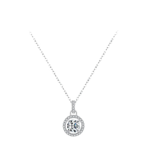 925 Sterling Silver 0.8Ct D Colour Halo Moissanite Pendant Necklace