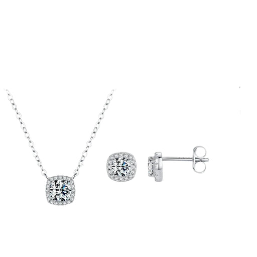 925 Sterling Silver Sparkling Moissanite Stud Earrings & Necklace Set