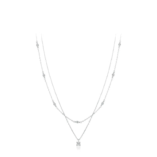 925 Sterling Silver Dazzling Double Layer Moissanite Pendant Necklace