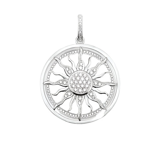 925 Sterling Silver Vintage Sun Pendant With White Zircon European Jewelry Gift