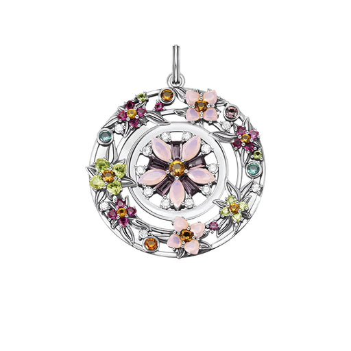 925 Sterling Silver Bohemian Flower Amulet Pendant Colourful Stones Fine Jewelry For Women